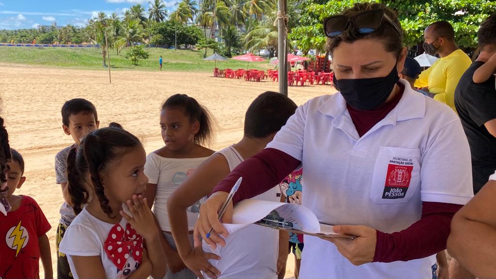 Prefeitura leva crianças de residencial para manhã de recreação na praia do Cabo Branco