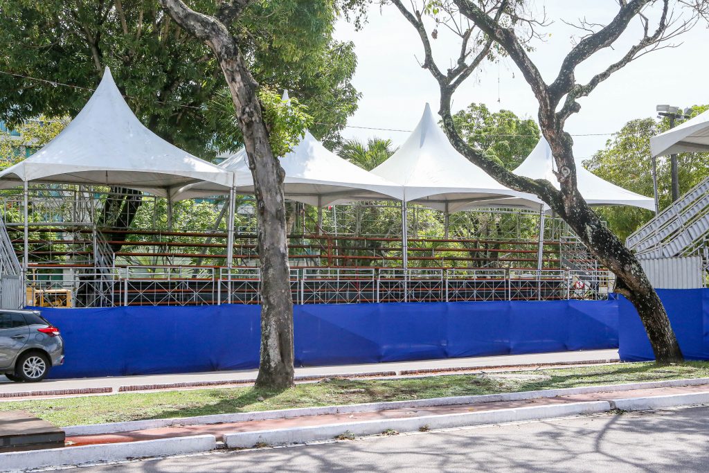 A área total da estrutura ocupa cerca de 7 mil metros quadrados, a mesma utilizada no ano passado, concentrada no quarteirão que vai do Posto Maia até a esquina da Rua Duque de Caxias. No espaço, estão instaladas arquibancadas com capacidade para aproximadamente 3 mil pessoas sentadas, além de áreas técnicas e de apoio que garantem o funcionamento dos desfiles ao longo dos quatro dias de programação.