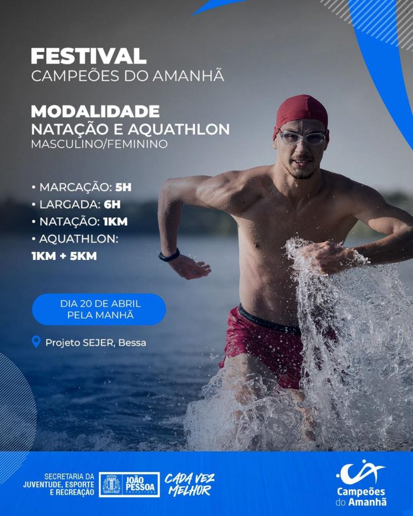 A Praia do Bessa, em João Pessoa, será o palco do Festival de Natação e Aquathlon, promovido pela Secretaria de Juventude, Esporte e Recreação (Sejer), neste sábado (20), a partir das 6h. O evento pretende reunir 130 atletas do projeto ‘Campeões do Amanhã’.