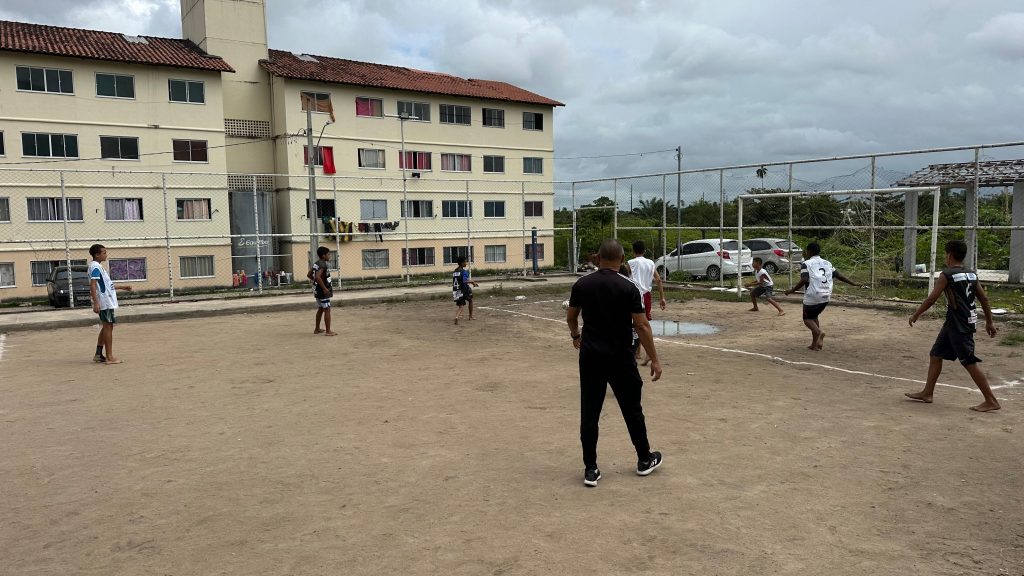 A chuva que ocorreu na manhã desta quarta feira (9) em João Pessoa não atrapalhou as atividades da colônia de férias, realizada pela Prefeitura de João Pessoa, por meio da Secretaria de Habitação Social, numa parceria com a Secretaria de Juventude, Esportes e Recreação (Sejer). Hoje os jovens do Residencial Vista Alegre participaram de uma oficina de futebol, no campinho que fica no bairro de Colinas do Sul.