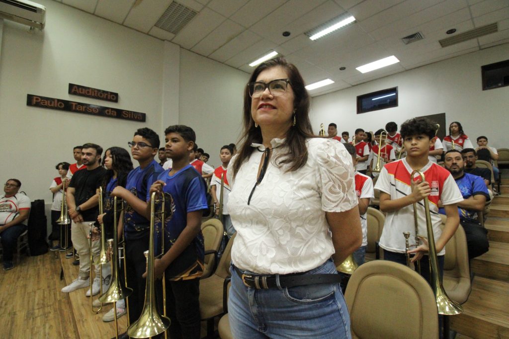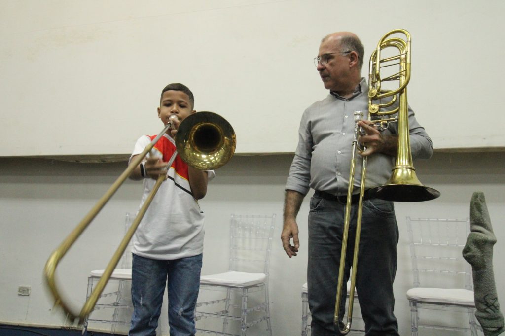 “Esse é um momento muito especial porque temos como convidado o professor doutor da UFPB, Alexandre Magno, que é uma sumidade em trombone. Nosso convidado toca, as crianças repetem e vão aprendendo, vão trocando informações. A música tem um papel muito importante na formação dos nossos alunos. A gente acompanha e vê que aquele aluno que está envolvido em outra atividade, ele desempenha e se envolve cada vez mais na aprendizagem”, afirmou a secretária executiva de Educação e Cultura, Luciana Dias.