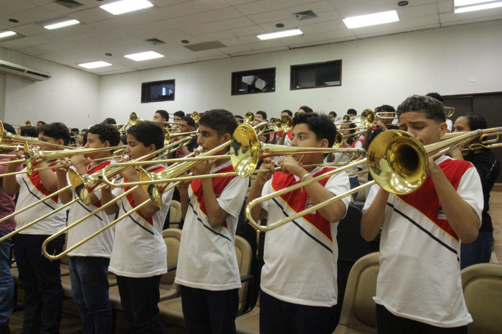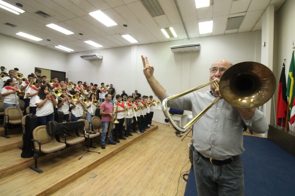 Mais de 100 alunos das escolas da Rede Municipal de Ensino de João Pessoa participaram, nesta sexta-feira (8), no auditório do Centro Administrativo Municipal, em Água Fria, de mais um processo formativo chamado ‘Caravana Trombonista’. A formação é realizada pela Secretaria de Educação e Cultura de João Pessoa (Sedec-JP), por meio da Seção de Bandas, em parceria com a Associação de Trombonistas da Paraíba.