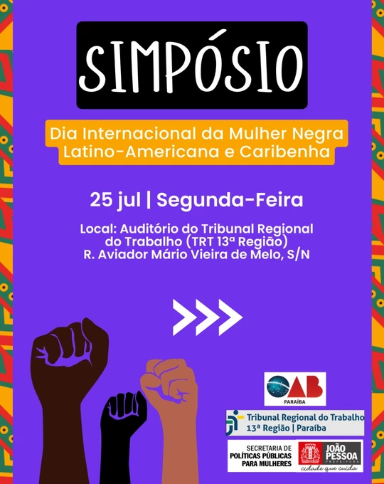 Coordenadoria LGBT Dia Nacional Tereza de Benguela discussões ia Internacional da Mulher Negra Latino-Americana e Caribenha igualdade racial OAB-PB palestras parceria SEPPM simpósio TRT