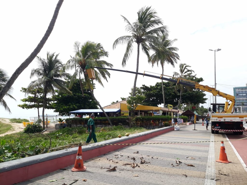 “Essa ação vem sendo feita de forma periódica, a cada três meses, evitando a queda de palhas e cocos e para garantir a segurança do público que frequenta as nossas praias, seja na calçadinha ou até mesmo na faixa de areia”, destacou.