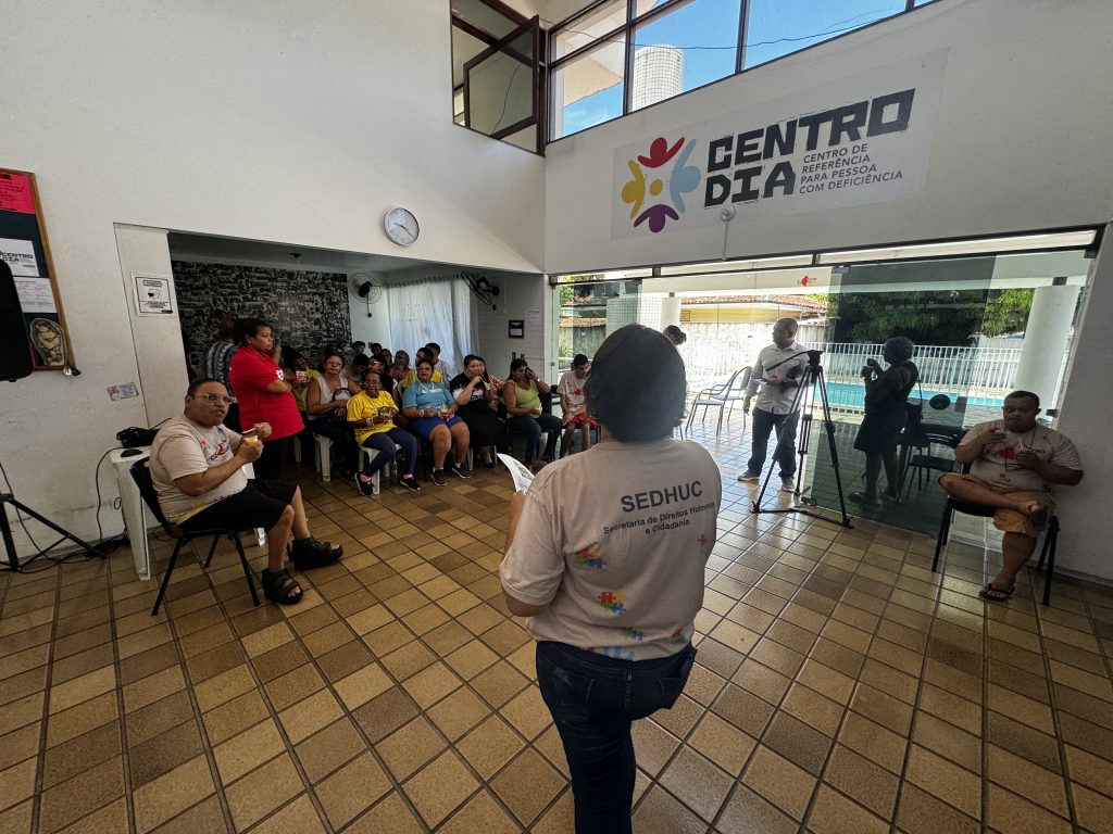 Serviço – O Centro Dia de Referência para Pessoas com Deficiência proporciona acolhimento, proteção e convivência a pessoas com deficiência de 18 a 50 anos, cujas famílias não tenham condições de prover cuidados durante todo dia ou parte dele. São desenvolvidas atividades que permitem a convivência em grupo, cuidados pessoais e fortalecimento das relações sociais.