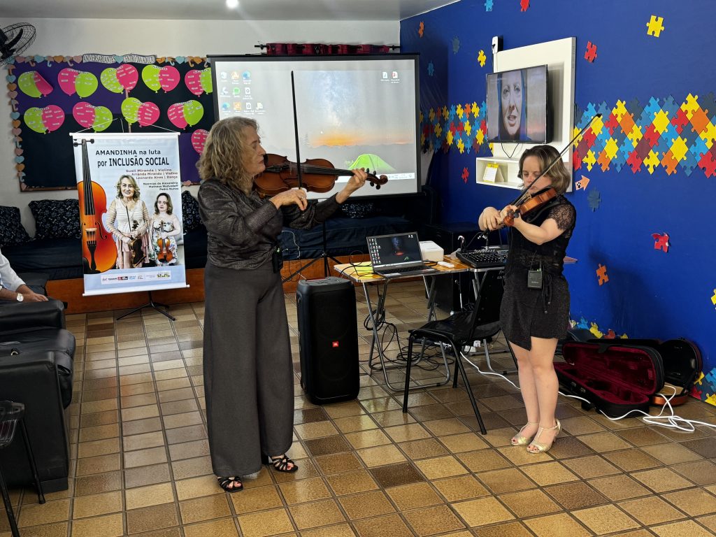 Os usuários e seus familiares assistiram a apresentação cultural do projeto ‘Amanda na Luta pela Inclusão Social’, uma mulher com síndrome de Down que superou barreiras e se apresenta com violino, ao lado de sua mãe, e dança de salão, com o professor e dançarino Leonardo. Além de uma palestra sobre o autismo nos dias atuais, as descobertas e dificuldades ainda existentes, promovida pela equipe multiprofissional da Casa do Autista.