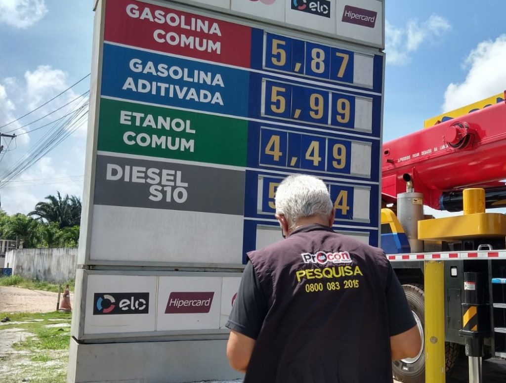 Gasolina – De acordo com o levantamento do Procon-JP, a variação entre o menor e o maior valor é de 6,2%, para pagamento a prazo, sendo o menor valor praticado a R$ 5,67 (Posto Elesbão – Água Fria) e o maior, R$ 6,02 (Posto Pichilau – Distrito Industrial).