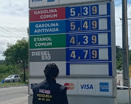 Pesquisa comparativa para preços de combustíveis, realizada pela Secretaria Municipal de Proteção e Defesa do Consumidor de João Pessoa, registra que o preço da gasolina comum vem se mantendo entre R$ 5,260 (Elesbão – Água Fria) e R$ 5,490 (Pichilau Gauchinha – Distrito Industrial) para pagamento à vista desde a semana passada, com diferença de R$ 0,23, variação de 4,4% e média de R$ 5,375. Para pagamento no cartão, os preços oscilam entre R$ 5,260 e R$ 5,660.