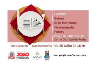 O programa João Pessoa Cidade Criativa da Unesco no Artesanato, convidou as cidades brasileiras Florianópolis (SC), Belém (PA), Belo Horizonte (MG) e Paraty (SP) para um diálogo visando uma maior aproximação entre artesanato e gastronomia. A conferência será nesta segunda-feira (20), a partir das 16h. O convidado para a interação será o chef de cozinha Onildo Rocha, que mediará a live juntamente com os representantes do programa João Pessoa Cidade Criativa.