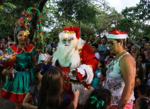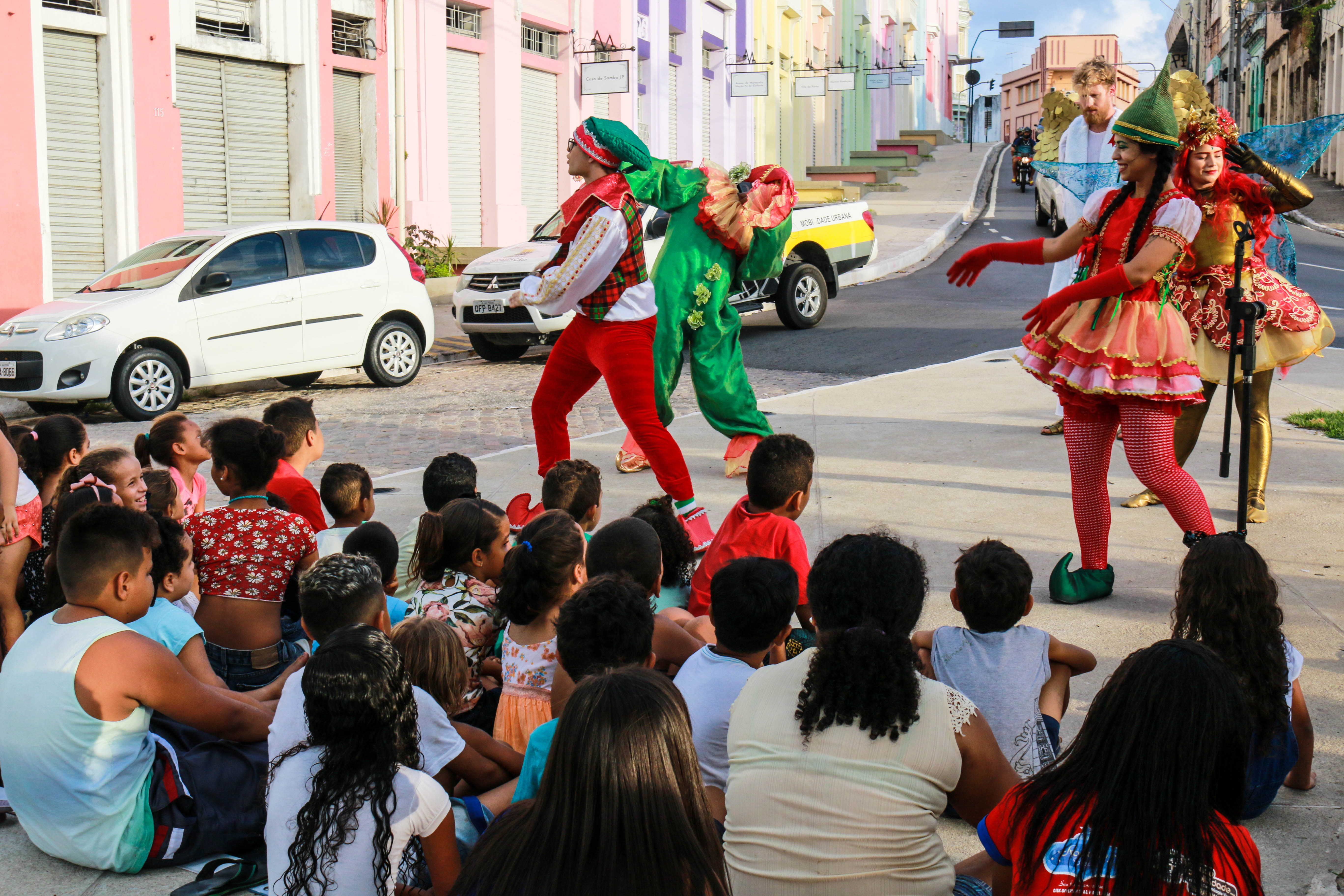 A programação começou às 16h na Villa Sanhauá com o espetáculo A Fábrica de Brinquedos do Papai Noel, do grupo Imaginart. O espetáculo contou a história de um menino que acordou com os seus brinquedos e descobriu com eles o significado do Natal, em um enredo que segurou a atenção das crianças. “A garotada ficou muito quietinha assistindo, por isso sempre que o carro de som passa anunciando que terá espetáculo aqui, eu venho, e quando as crianças souberam que era sobre o Natal fizeram questão de vir”, revelou a dona de casa Niedja Oliveira, que levou os filhos e os sobrinhos para prestigiar o espetáculo.