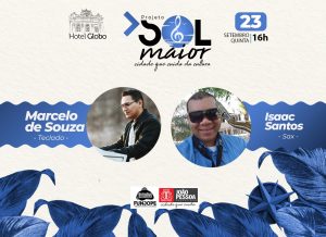 O projeto ‘Sol Maior’, realizado pela Prefeitura de João Pessoa, por meio da sua Fundação Cultural (Funjope), traz, nesta quinta-feira (23), os instrumentistas Marcelo de Souza, no teclado, e Isaac Santos, no sax. A apresentação começa às 16h, no Hotel Globo, localizado no Centro Histórico de João Pessoa, ao lado da Igreja de São Frei Pedro Gonçalves.