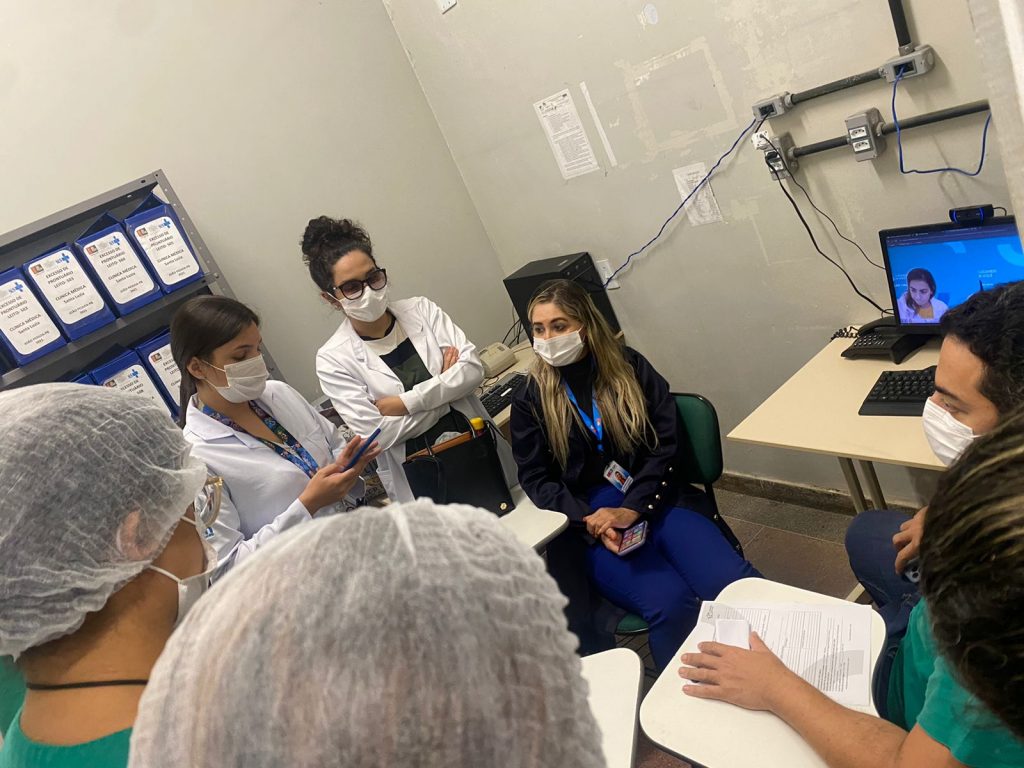 As visitas, que ocorrem de forma online, feitas por videoconferência, acontecerão diariamente na Unidade de Terapia 4 (UTI 4) e na Clínica Médica (Enfermaria Santa Luzia). Na UTI 4 as visitas acontecem todos os dias, ao meio-dia, e na Clínica Médica nas terças-feiras. Na semana passada, uma equipe do Oswaldo Cruz esteve presencialmente no HMSI, para uma visita diagnóstica e nova apresentação do projeto. A próxima visita presencial está prevista para maio.