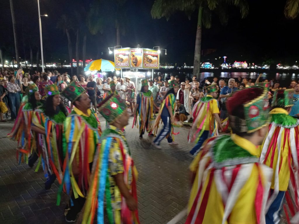 O palco Cultura Popular recebeu, neste sábado (3), a nau catarineta Barca de Santa Marina e o grupo de cultura popular Boi de Reis Estrela do Norte. Neste domingo (4), véspera do aniversário da cidade, sobem ao mesmo palco Vó Mera e suas Netinhas, e o Babau Joaquim Guedes, do Mestre Vavau, a partir das 17h.