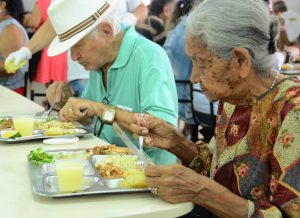 A população da Zona Sul está comemorando nesta terça-feira (11) os quatro anos do Restaurante Popular Municipal de Mangabeira, que oferece mais de 900 refeições por dia pelo preço simbólico de apenas R$ 1, o que representa uma economia de 40% no orçamento doméstico para muitas famílias. No final desta manhã, o prefeito Luciano Cartaxo visitou o espaço e prestigiou a comemoração ao lado de trabalhadores, pais e mães de família, além de muitas crianças que contam com este almoço diariamente.