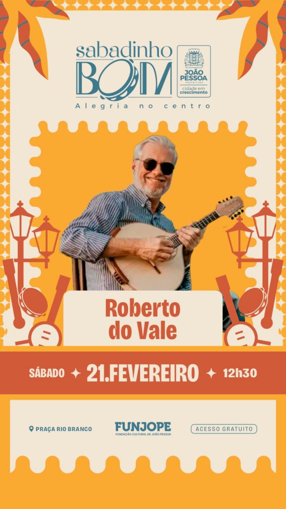A música instrumental nordestina será destaque em mais uma edição do projeto Sabadinho Bom, realizado pela Fundação Cultural de João Pessoa (Funjope), neste sábado (21), a partir de 12h30, na Praça Rio Branco, Centro Histórico da Capital. A atração desta semana é o músico Roberto do Valle, que promete levar ao público um repertório marcado pela riqueza do choro, do frevo e de outros ritmos tradicionais, reforçando a proposta do projeto de valorizar a cultura regional.