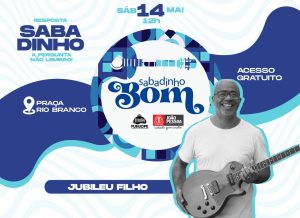 O instrumentista potiguar Jubileu Filho, que se dedica ao chorinho, fará apresentação neste sábado (14), no projeto ‘Sabadinho Bom’, que acontece na Praça Rio Branco, no Centro. O evento, realizado pela Prefeitura de João Pessoa, através da sua Fundação Cultural (Funjope), é gratuito e começa ao meio-dia.