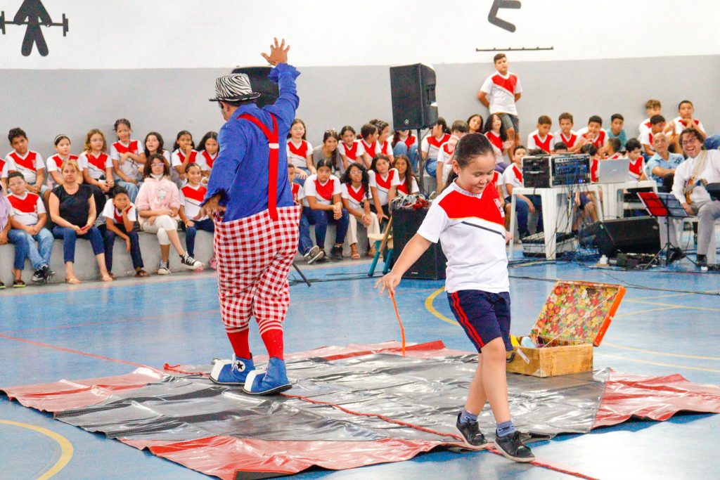 As crianças também participaram das brincadeiras e puderam interagir, como o caso da aluna do 3º ano do Fundamental I, Ana Bárbara. O Palhaço Coceirinha esticou uma corda no chão e a aluna precisou atravessar como se estive em uma corda bamba. “Foi muito legal. Eu fiquei sem entender um pouco no começo, mas eu só entendi que era para passar pela corda. Eu também achei muito bom quando a Orquestra tocou a música da Pantera Cor-de-Rosa”, disse a aluna.