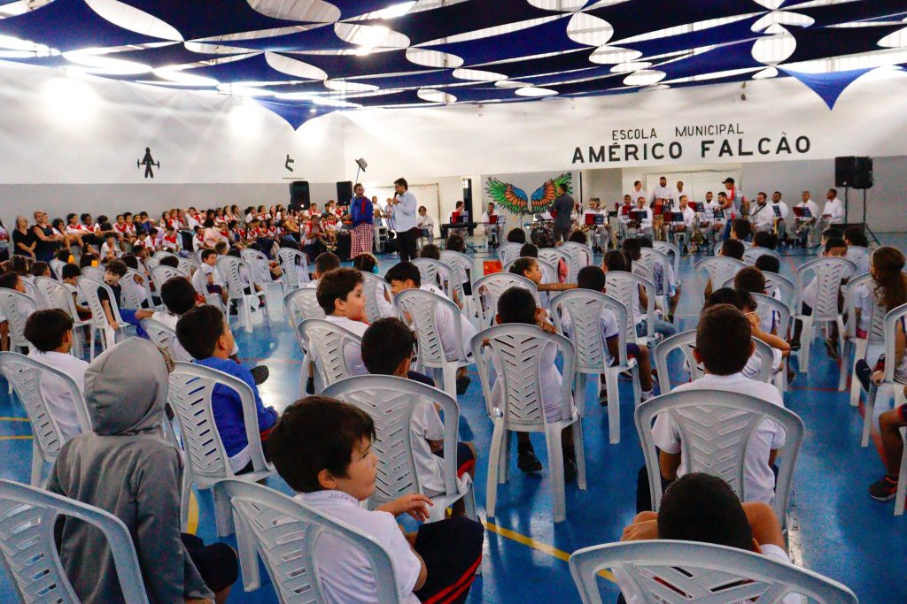 “Toda a minha vida eu estudei em escola pública, na escola Municipal Augusto dos Anjos. E eu fui contemplado em ter o contato com a música na escola. Então, hoje eu vejo que a música nas escolas é muito importante, exatamente porque esse momento de hoje vai ficar na memória das crianças. É muito gratificante poder ver as crianças interagindo comigo, com a orquestra, com a música”, disse o professor de Educação Física, Jacson Lima da Silva, intérprete do palhaço Coceirinha.