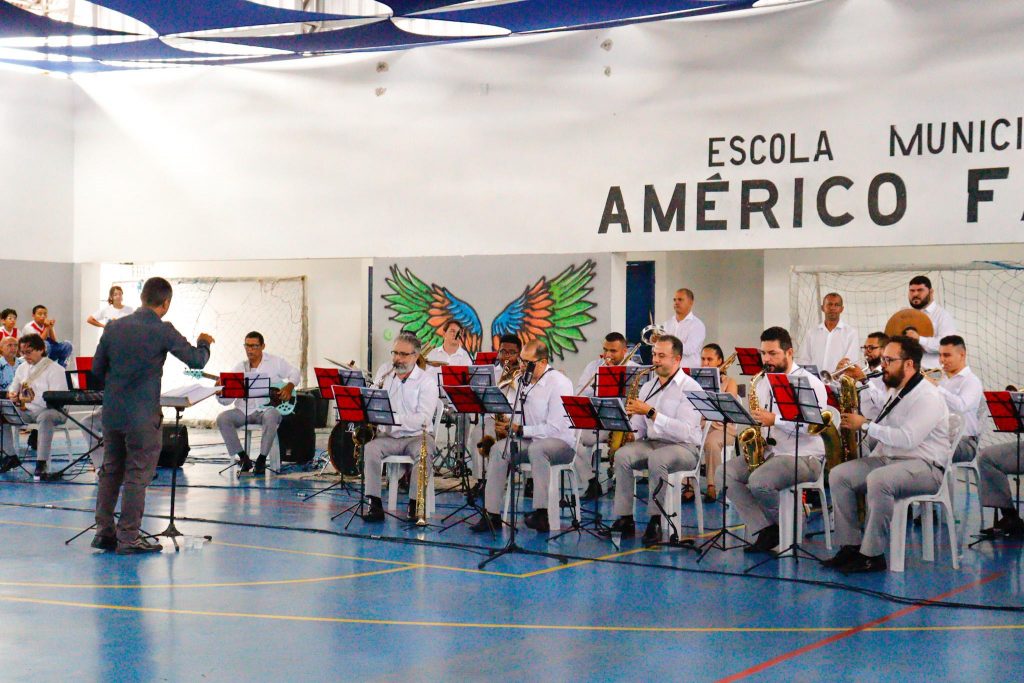 Ver, assim, no olhar das crianças e entender realmente que a música faz a diferença na vida da gente é muito bom. Já visitamos a Escola Municipal Jornalista Raimundo Nonato e Hugo Moura. Além da EMAI Santos Dumont e ainda teremos no dia 18 de desse mês a Escola Municipal Moema Tinoco, no bairro do João Paulo II”, explicou o diretor da Seção de Bandas da Sedec-JP, Rômulo Albuquerque.