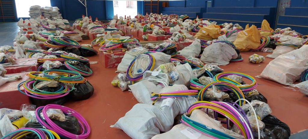 Kit escola – estão sendo entregues 100 kits de materiais esportivos sobre a responsabilidade dos diretores e diretoras das unidades de ensino. Cada kit é composto de colchonetes, cones, cordas, bambolês, redes de voleibol e futsal, travinhas e bolas de leite.