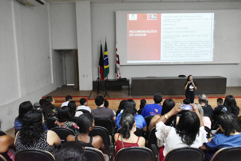 Durante a reunião foram esclarecidos para os familiares todos os detalhes da viagem, procedimentos da seleção, documentação necessária para o embarque, além de outras recomendações como a rotina na escola.