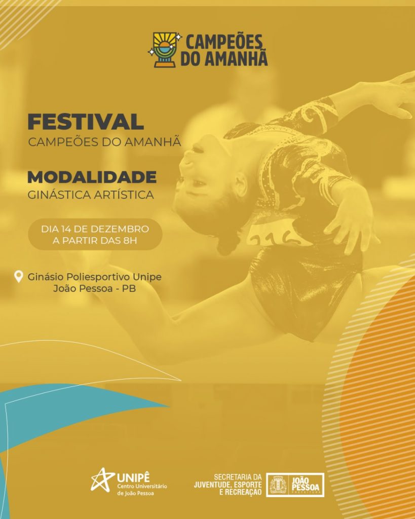 Neste sábado (14), o ginásio de esportes do Unipê, em Água Fria, será o cenário de mais um espetáculo da ginástica artística, do projeto ‘Campeões do Amanhã’, com a apresentação das atletas no 4º festival da modalidade. O evento, promovido pela Prefeitura de João Pessoa, por meio da Secretaria de Juventude, Esporte e Recreação (Sejer), inicia às 8h e deve contar com aproximadamente 75 alunos.