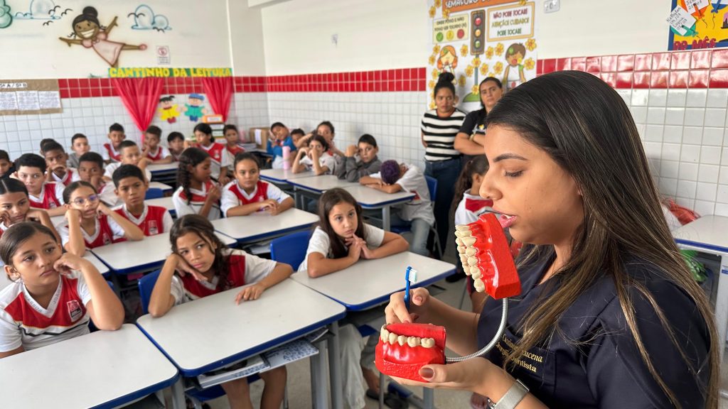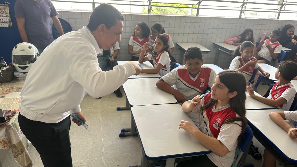 Saúde Bucal – O programa esteve presente na manhã desta quinta-feira (25) no Residencial Vista Alegre, atendendo 45 alunos da Escola Municipal Deputada Lúcia Braga. A iniciativa é resultado de uma parceria entre a Secretaria de Habitação e a Secretaria Municipal de Saúde (SMS), através da equipe da Unidade de Saúde da Família (USF) Vista Alegre, do Distrito Sanitário II.
