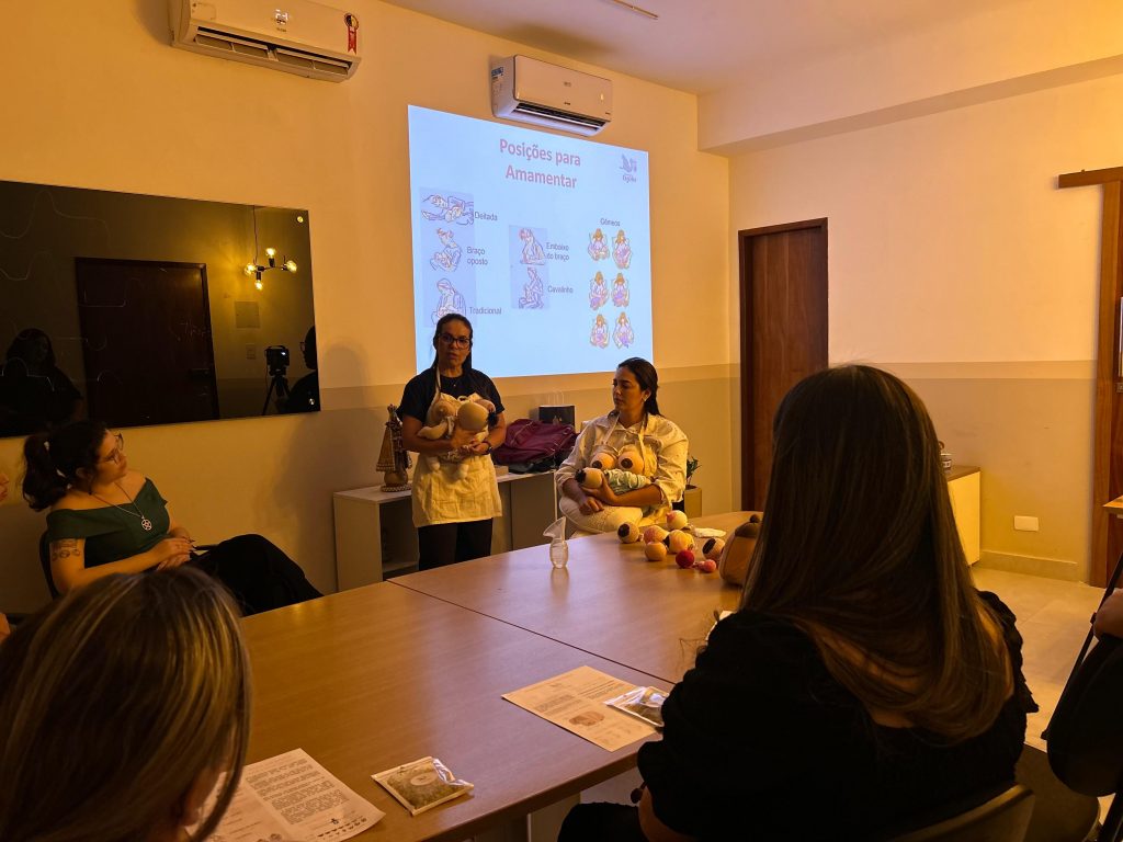 Durante o encontro, as consultoras abordaram temas importantes sobre o aleitamento materno, como os benefícios da amamentação para a mãe e para o bebê, anatomia da mama, cuidados no pós-parto, posições para amamentar, itens indispensáveis para a amamentação e muito mais.