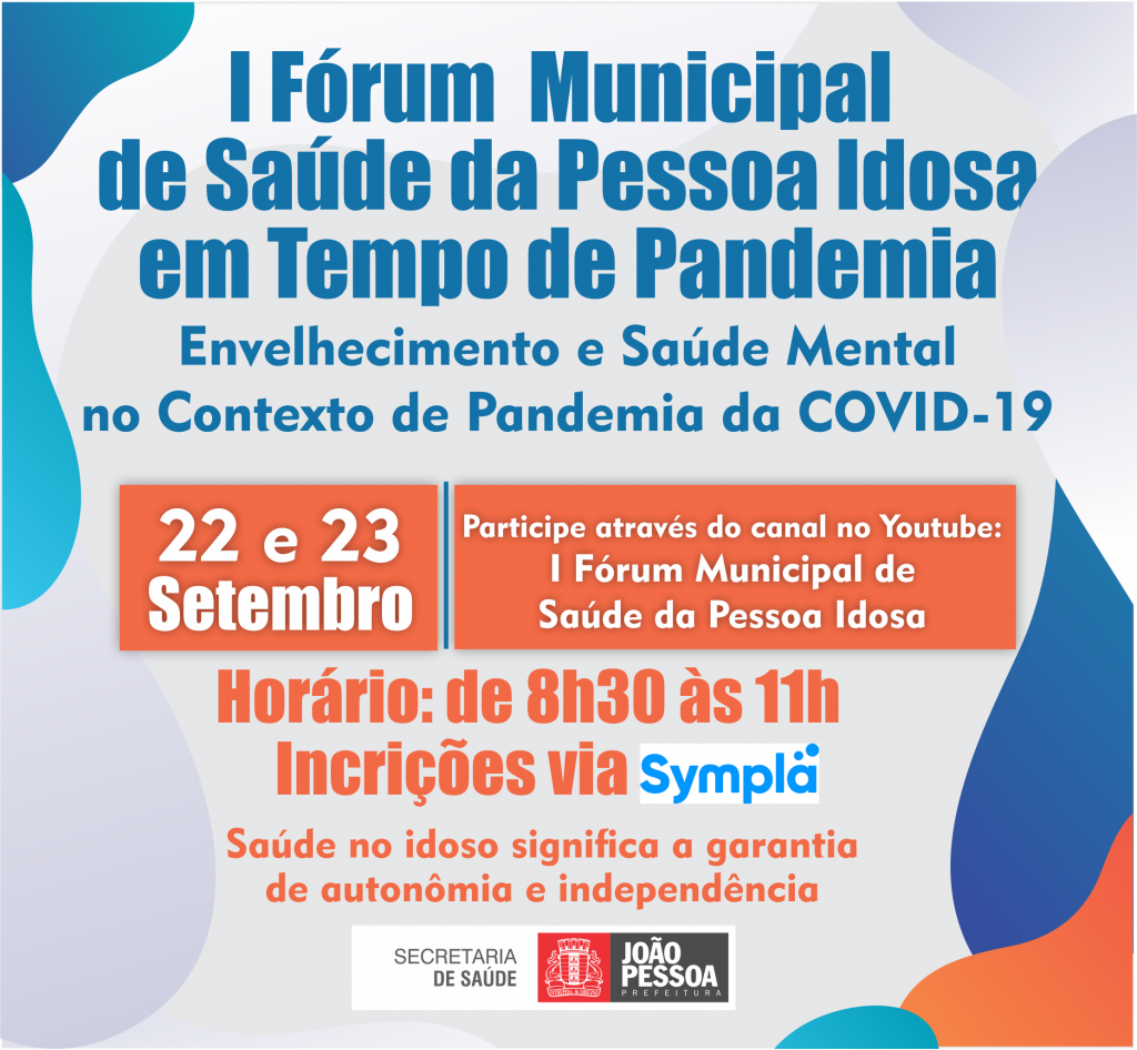 A Secretaria de Saúde de João Pessoa estará realizando nesta quarta (22) e quinta-feira (23) o I Fórum Municipal de Saúde da Pessoa Idosa em tempo de pandemia. O evento é gratuito e voltado aos profissionais de saúde, profissionais da assistência social, gestores, estudantes, idosos e quem tiver interesse no assunto. Para participar a inscrição deve ser feita através do link: https://bityli.com/U0l97w