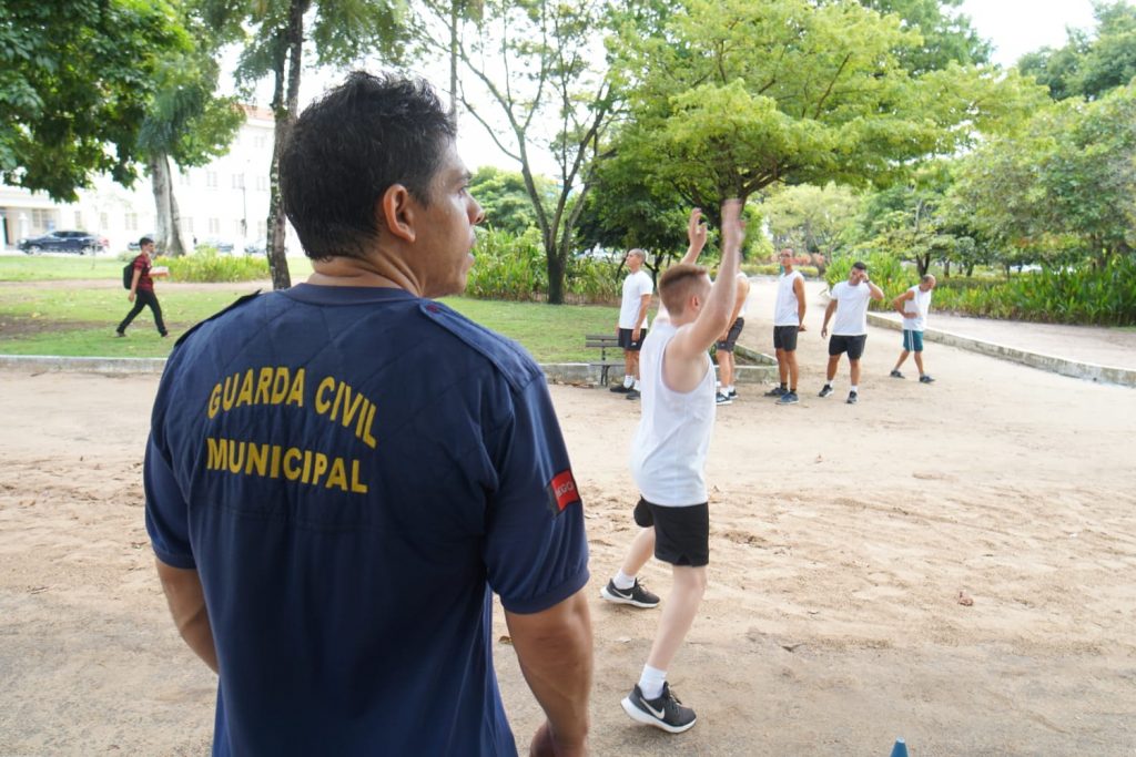 A Prefeitura de João Pessoa, por meio da Secretaria Municipal de Segurança Urbana e Cidadania (Semusb), realiza um curso de formação de oito servidores para compor a Guarda Municipal da cidade de Jacaraú. A capacitação teve início nesta segunda-feira (2), na base central da Guarda Civil Metropolitana da Capital, e na Praça da Independência, onde praticaram exercícios ao ar livre.