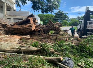 A operacionalidade entre a Secretaria de Desenvolvimento Urbano (Sedurb) e a Autarquia Especial Municipal de Limpeza Urbana (Emlur), iniciada assim que a ocorrência foi registrada na manhã desta sexta-feira (14), realizou a poda e coleta dos resíduos tanto da pista quando das calçadas. Agora, apenas o tronco da árvore permanece, sendo do proprietário do terreno a responsabilidade da manutenção ou retirada por completo.