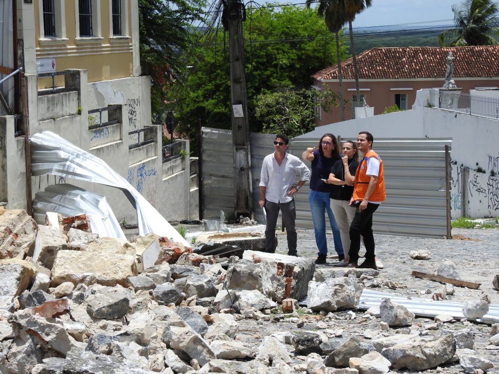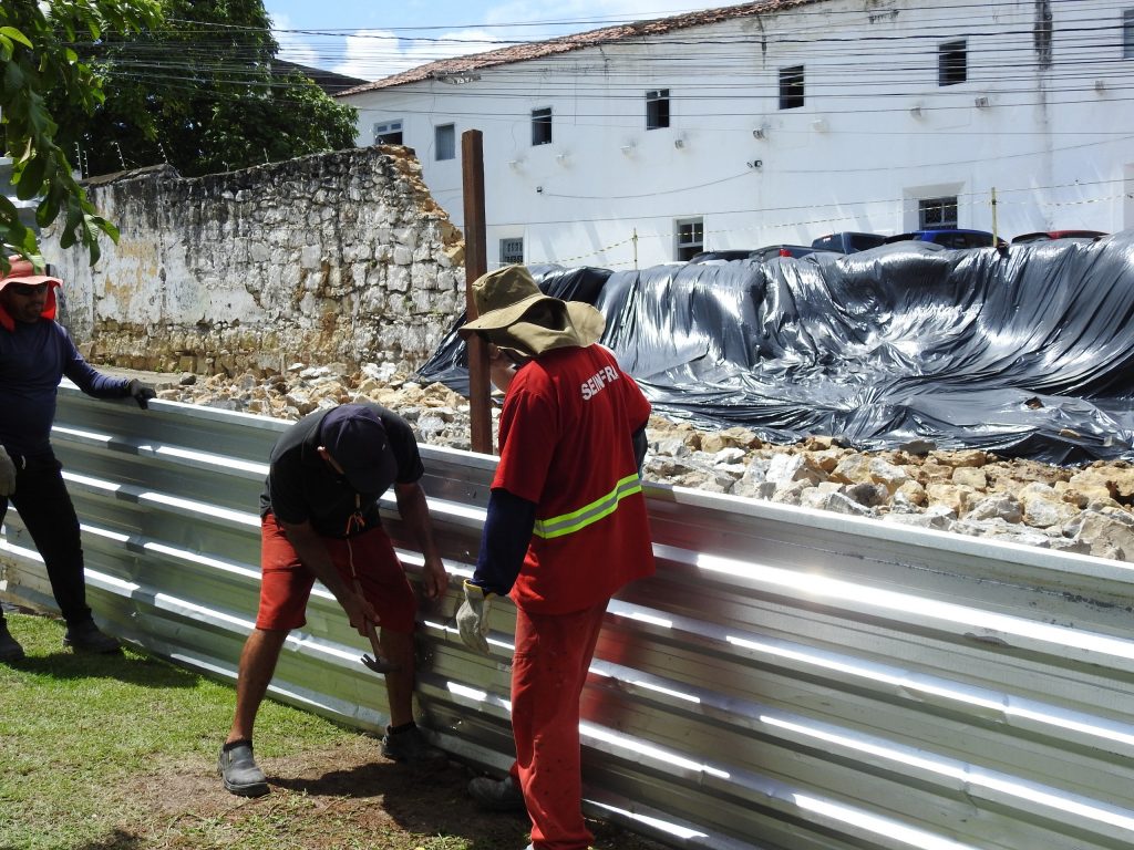 “A Seinfra está disponibilizando toda a equipe técnica para que a gente possa fazer a desmontagem da parte que ficou do muro de forma segura e acompanhada pelos órgãos que regem o tombamento histórico, para que a gente possa reconstituir futuramente esse muro. Nós também disponibilizamos nossa equipe para desenvolver o projeto do muro de arrimo para o mais rápido possível”, destacou Glennda Ramos, assessora técnica da Diretoria de Manutenção e Conservação da Seinfra.