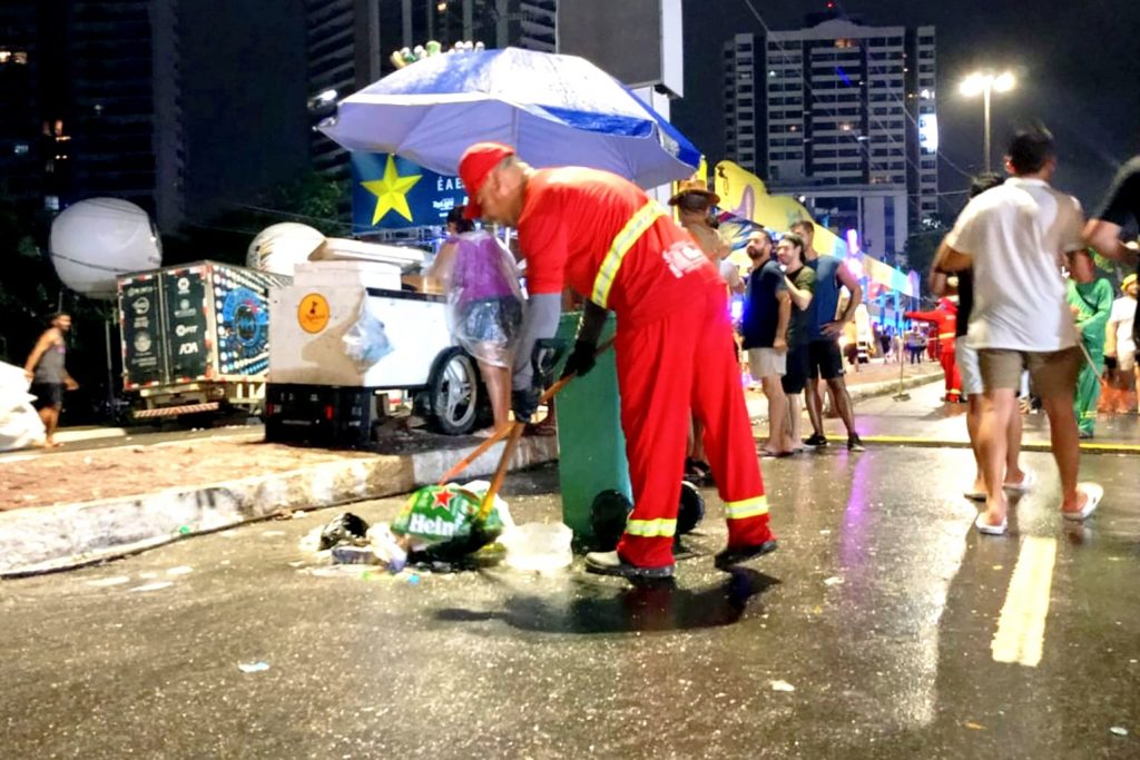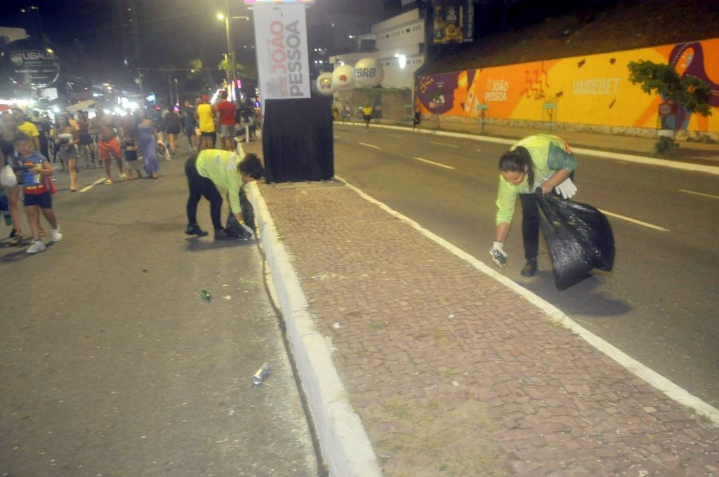 A Autarquia Especial Municipal de Limpeza Urbana (Emlur) segue, neste domingo (8), com a terceira noite da operação especial de limpeza na Via Folia, durante o desfile do bloco Virgens de Tambaú. Mesmo com a chuva, as equipes mantêm o ritmo de trabalho, garantindo organização, limpeza e sustentabilidade ao evento.