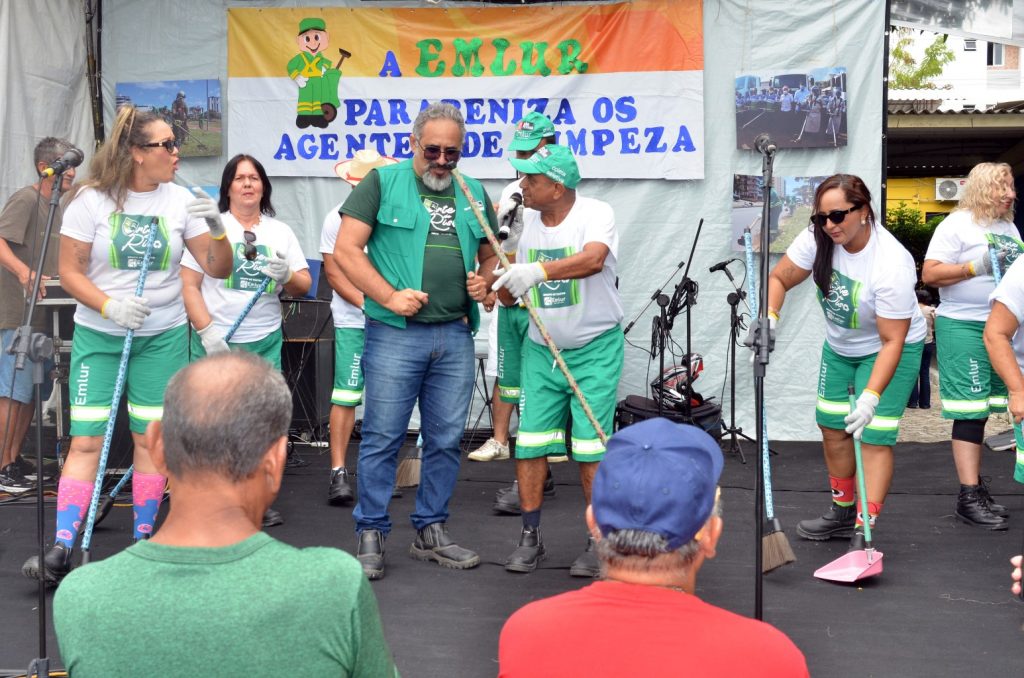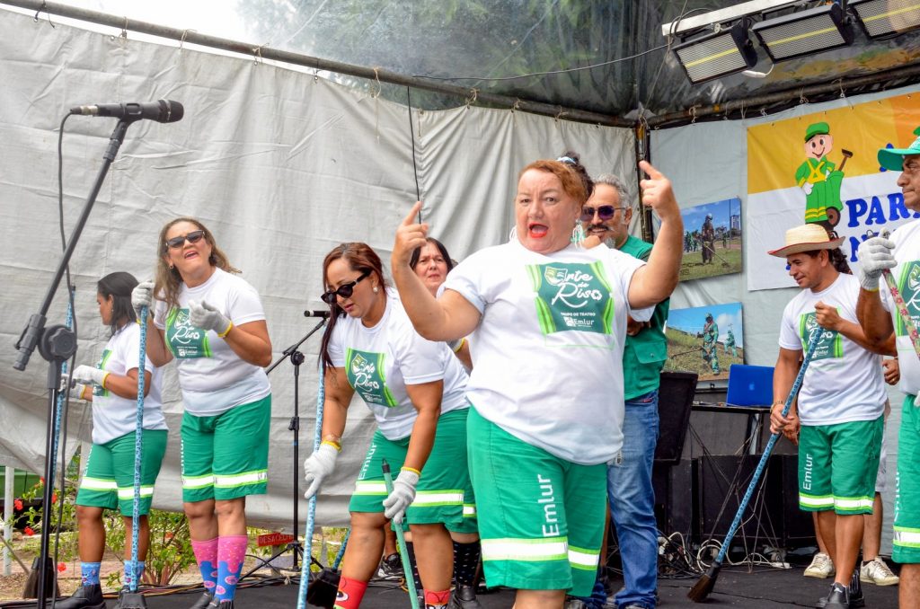 Teatro e música – O grupo de teatro da Emlur, Arte do Riso, apresentou a peça ‘Do passado ao presente: a Emlur sempre com a gente’, que retratou, em tom de comédia, as mudanças no cotidiano do agente de limpeza. O enredo fez um comparativo sobre os veículos e equipamentos utilizados, evidenciando que o desempenho dos serviços de limpeza urbana era mais árduo há algumas décadas.
