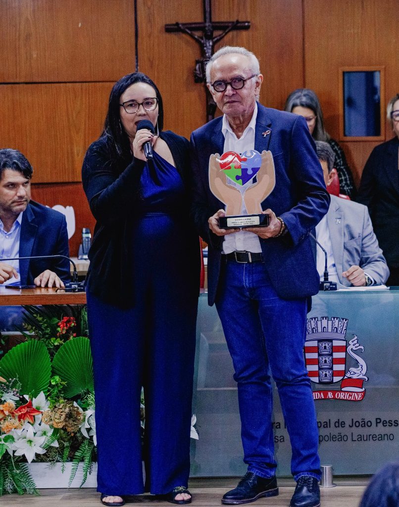 O mês de abril é o de conscientização sobre o autismo e, por conta disso, foi realizada, na tarde desta quinta-feira (10), a ‘Sessão Especial em prol dos Autistas’, no plenário da Câmara Municipal de João Pessoa (CMJP). Na ocasião, o prefeito Cícero Lucena e o diretor executivo da Fundação Cultural de João Pessoa (Funjope), Marcus Alves, foram homenageados e receberam o prêmio ‘Amigo do Autista’, certificado do Movimento Orgulho Autista Brasil (Moab), em reconhecimento a defesa dos direitos das pessoas com Transtorno do Espectro Autista (TEA) na Capital paraibana. O gestor também anunciou a entrega do Centro Especializado em Reabilitação, que está sendo construído no bairro do Bancários, para o próximo mês de agosto.