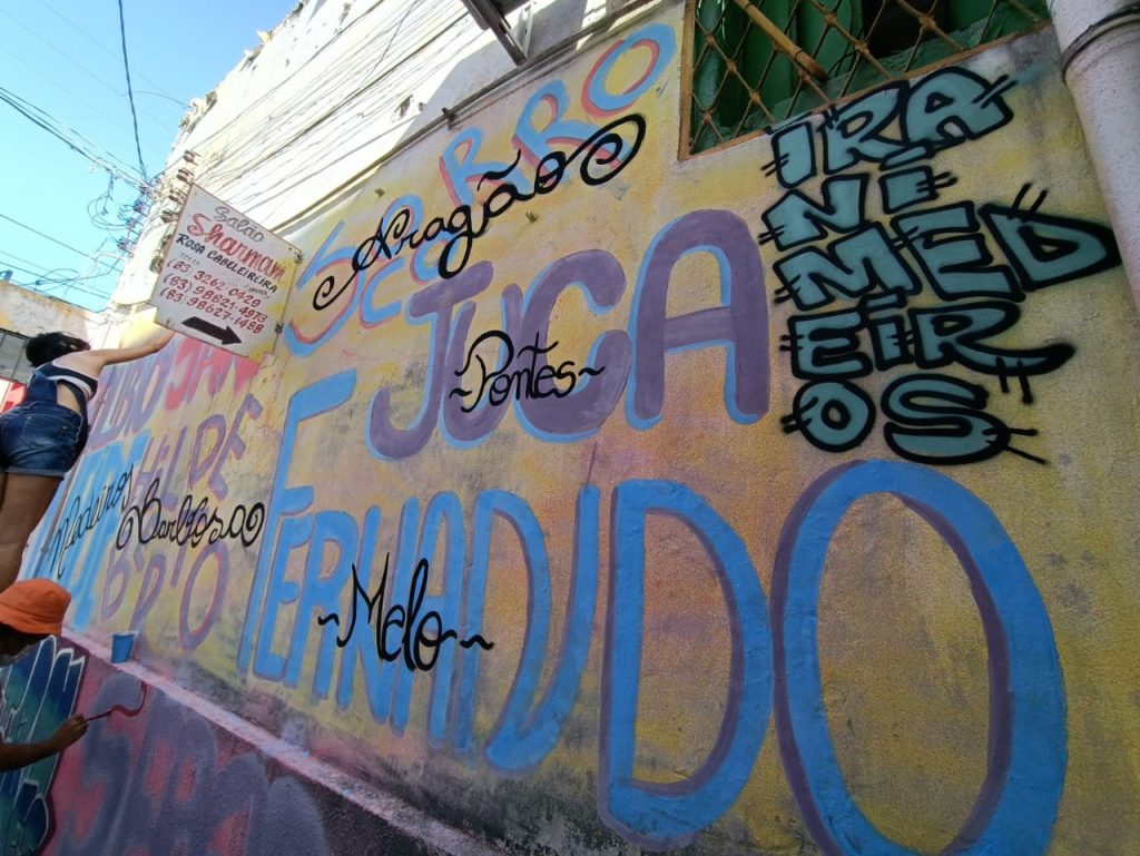 Grafiteiros – No último sábado (29), a pintura foi finalizada por Waleska Cabral, que assina Saia; Phil Meneses; Rayssa Silva, que assina Maga; Isadora Félix, que assina Pink; e Kalyne Lima, que assina Klima e está à frente desse trabalho.