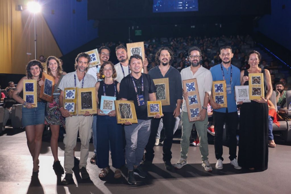 A noite de sábado destacou ainda o longa ‘Os Sapos’, de Clara Linhart. A produção carioca saiu da cerimônia igualmente com três prêmios: Melhor Direção, Melhor Roteiro e Melhor Montagem. ‘Os Sapos’ narra a história de Paula, que é convidada para um fim de semana numa casa de campo isolada. Em um cenário bucólico, a personagem se surpreende ao encontrar dois casais desconhecidos em profundas crises de relacionamento. A presença dela deflagra conflitos até então insuspeitos.