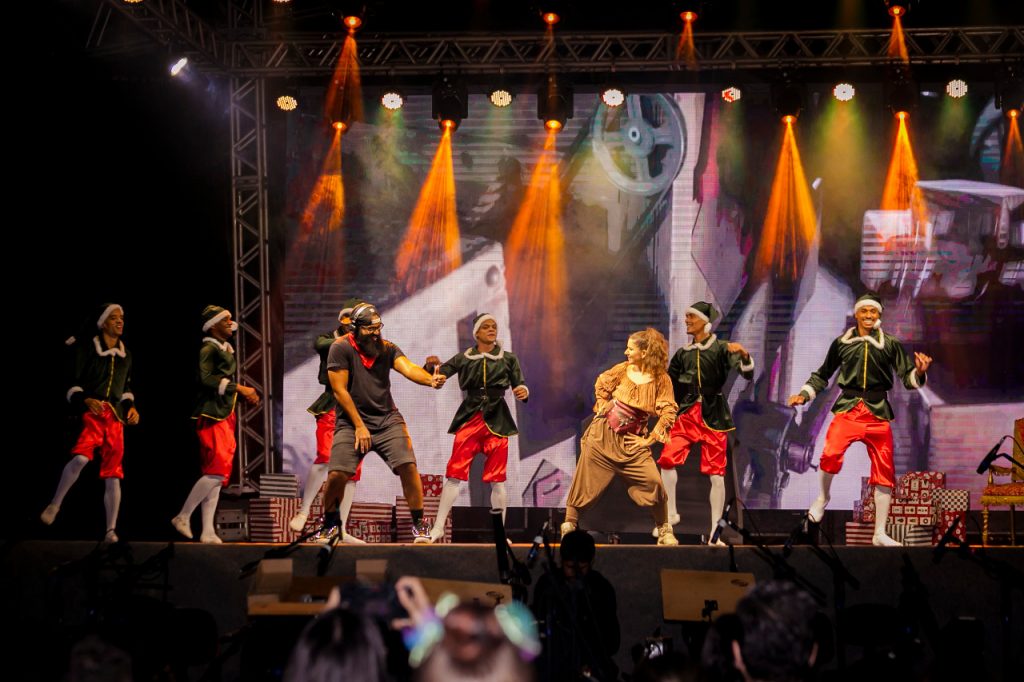 O concerto ‘Contos de Natal’ contou ainda com a participação do DJ Iordz, do ator Adilson Lucena, que interpreta o Palhaço Pipi, mas nesta noite representou o Papai Noel. Também compôs o elenco a bailarina Jack Keysy.
