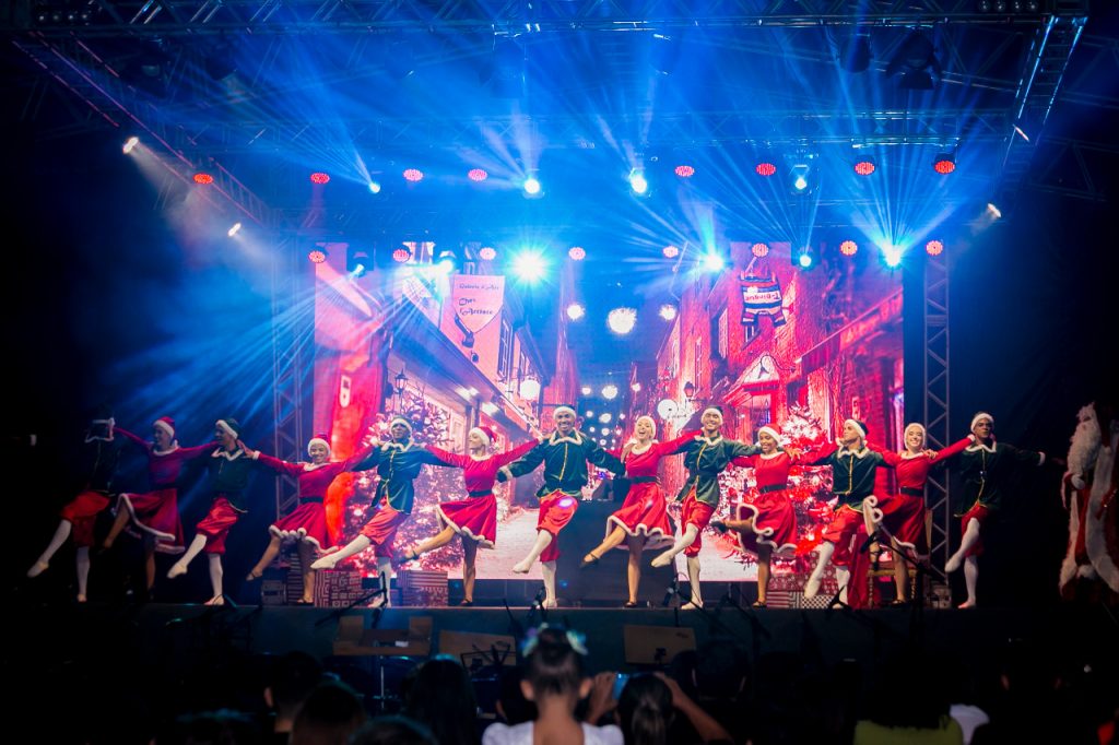 Um Natal Mágico – A segunda parte da noite foi um musical idealizado pela coordenação de Danças da Funjope, junto com as coreógrafas e a diretora. É o musical ‘Um Natal Mágico’. Nele, duendes preparam presentes em uma fábrica de brinquedos com a ajuda das Mamães Noel, e vão, com o Papai Noel, entregá-los às crianças da Cidade Iluminada.