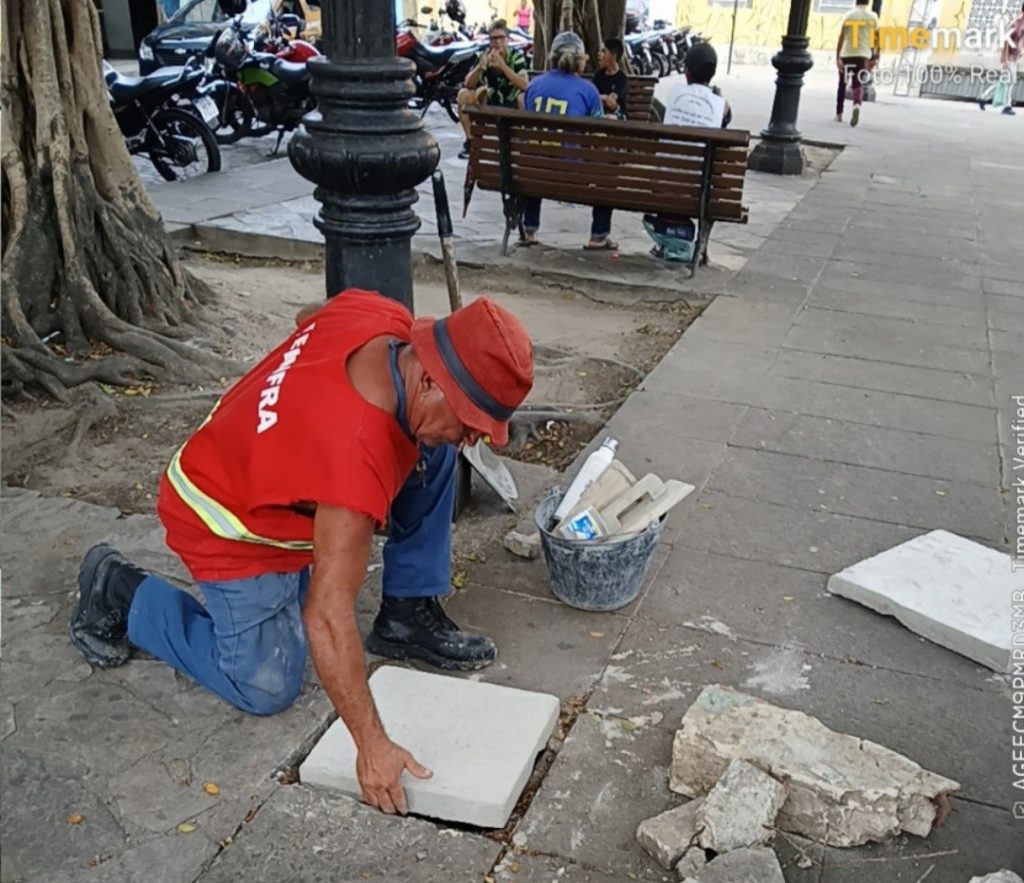 De acordo com Otto Araújo, diretor de Conservação e Manutenção da Seinfra, foram feitos reparos em todo o calçamento, incluindo tampas de inspeção, consertos de partes do piso intertravado e do meio-fio. Além disso, os canteiros das árvores também receberam reparos. “Foi feita a recuperação da infraestrutura da praça. Não é reforma, é apenas uma manutenção que foi solicitada pelo secretário Marcus Alves”, afirmou.