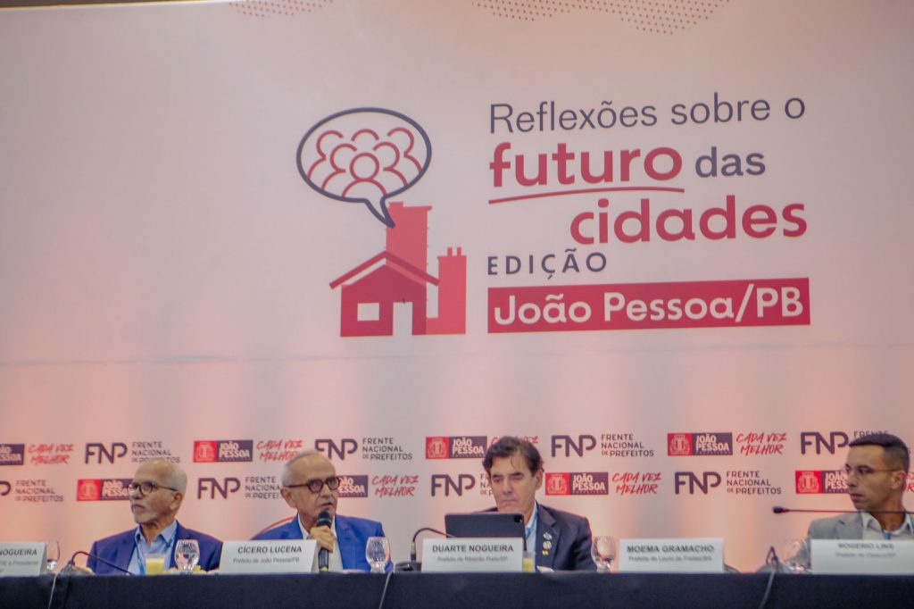 O prefeito Cícero Lucena abordou o Plano de Ação Climática de João Pessoa durante o painel ‘Articulação federativa e adaptação das cidades às mudanças climáticas’. A mesa faz parte do encontro geral da Federação Nacional de Prefeitos (FNP), que acontece nesta quinta (1°) e sexta-feira (2), no Centro de Convenções, na Capital paraibana.