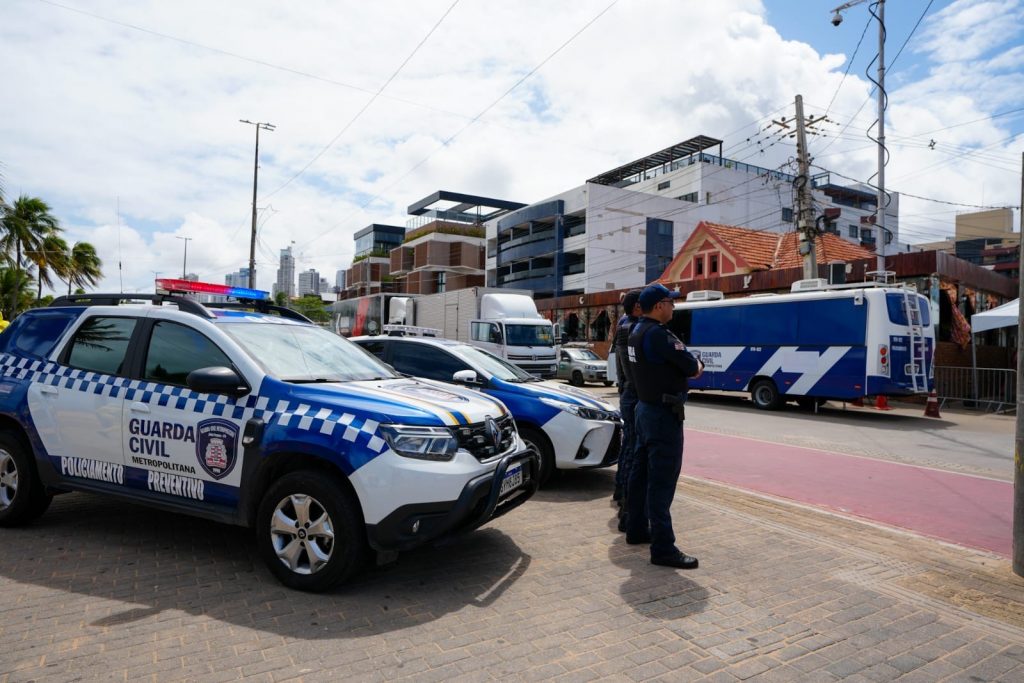 Para a festa de Réveillon que será realizada pela Prefeitura de João Pessoa no Busto de Tamandaré, na noite desta terça-feira (31), a Guarda Civil Metropolitana preparou um esquema especial de segurança. O trabalho vai contar com policiamento preventivo a pé, equipes do motopatrulhamento e em viaturas, além do policiamento aéreo com os drones, o serviço de inteligência e o ônibus de monitoramento itinerante, que está estrategicamente no local do evento.