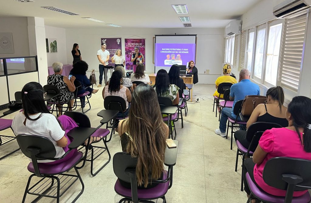 Uma tarde para debater, com o poder público e a sociedade em geral, o racismo estrutural. O encontro aconteceu no Espaço da Mulher, no Paço Municipal, nesta segunda-feira (20), Dia da Consciência Negra. A Coordenadoria de Promoção à Cidadania LGBT e Igualdade Racial e a Secretaria Extraordinária de Políticas Públicas para as Mulheres (SEPPM) convidaram as juristas Carla Uedler Moreira e Francisca Leite para ministrar a palestra ‘Racismo estrutural e suas consequências na sociedade’.