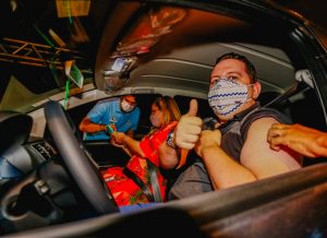 Dayana Pereira, artesã de 35 anos, se vacinou no drive do Santuário Mãe Rainha, no Aeroclube. Segundo ela, o momento trouxe uma sensação única. “Eu perdi dois conhecidos para a Covid e traz muito alívio e alegria poder se vacinar”, afirmou.