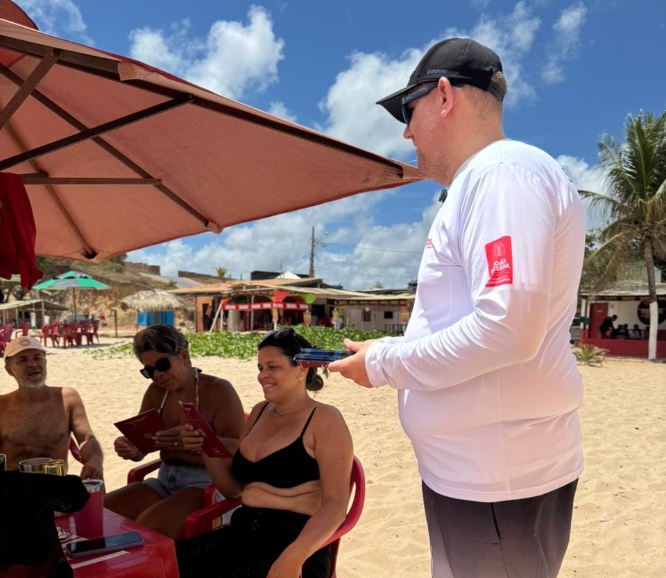 Os fiscais do Procon de João Pessoa estão percorrendo os estabelecimentos comerciais da Orla da Capital, neste sábado (10) e domingo (11), como parte das ações da primeira etapa da ‘Operação Verão 2026’. Nas visitas preventivas e educativas, as equipes entregam o check list de leis aos proprietários de bares, restaurantes, quiosques e similares instalados nas praias. Na ocasião, também é distribuída a Cartilha Dicas de Verão aos consumidores que estão frequentando a Orla.