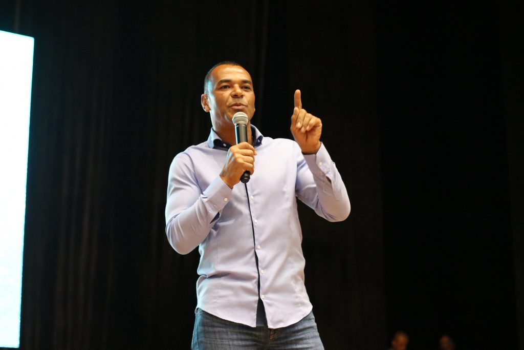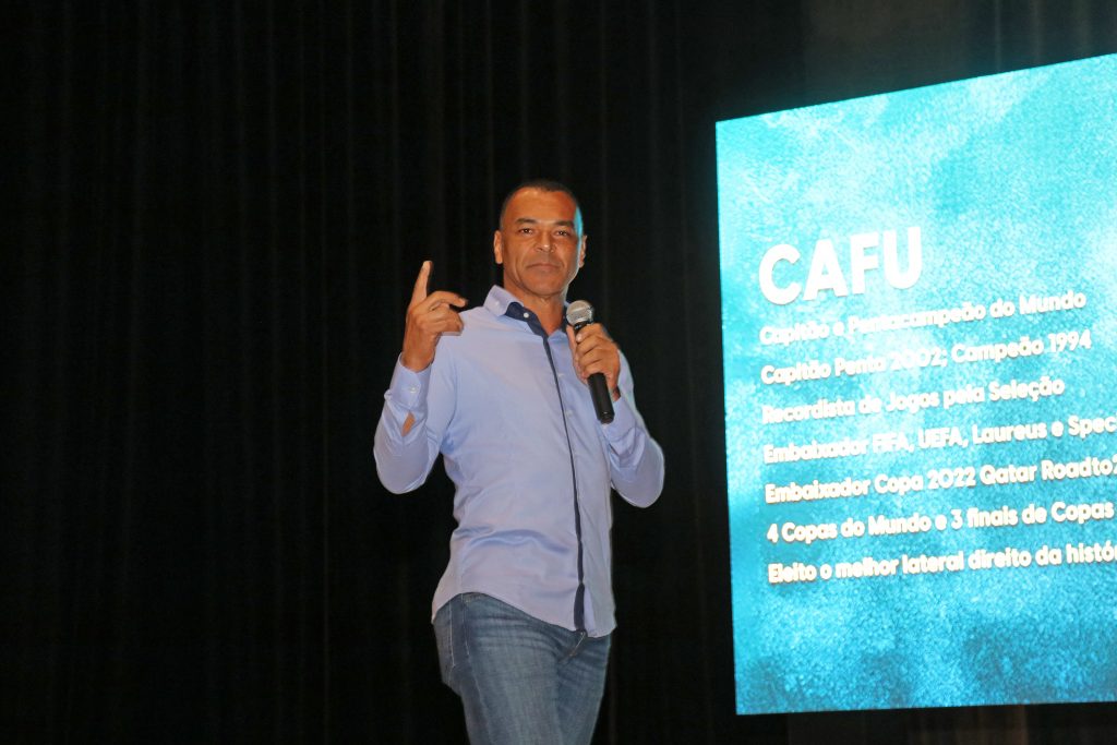 A trajetória vitoriosa do jogador Cafu, pentacampeão da Seleção Brasileira de Futebol, e seu papel de liderança junto ao time brasileiro que venceu a Copa do Mundo em 2002 serviram de pano de fundo em palestra para motivar servidores da Prefeitura de João Pessoa. O encontro aconteceu durante o Congresso Técnico Esportivo Motivacional realizado pela Escola de Governo Municipal (Esgov), na tarde desta segunda-feira (17), no Teatro Pedra do Reino.