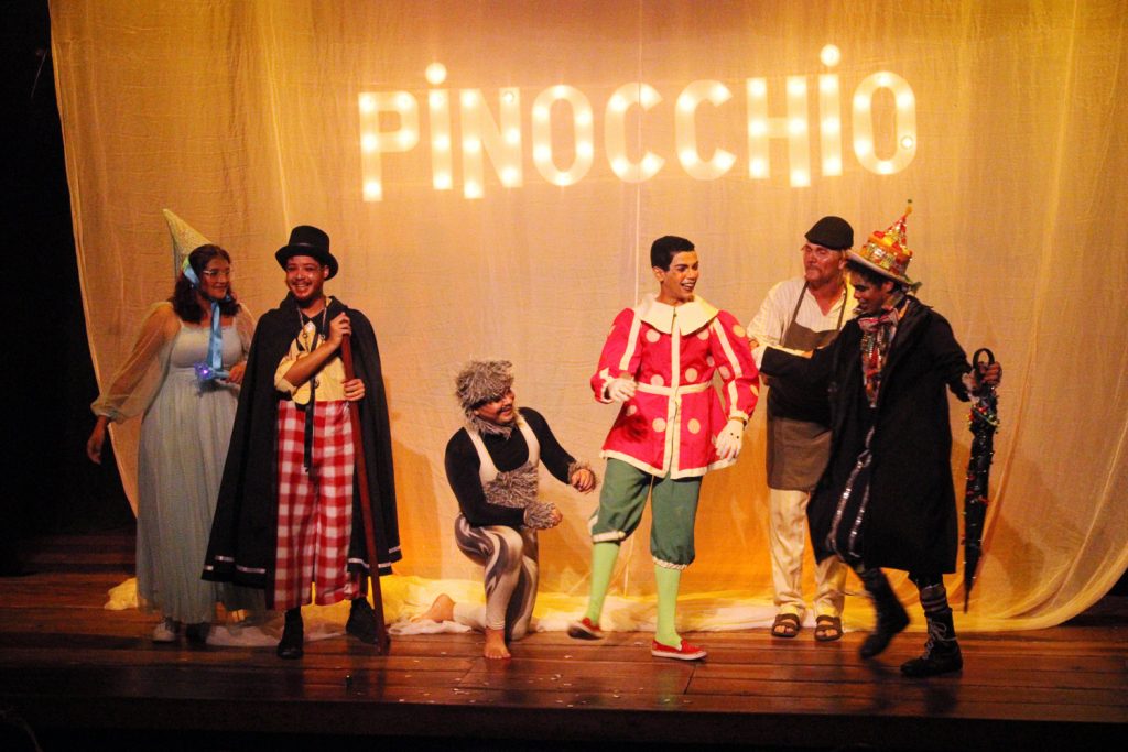 A Companhia de teatro traz um espetáculo colorido, divertido e interativo, fazendo uma reeleitura da famosa história de Pinóquio – o boneco de madeira que sonha virar gente. A peça passa para as crianças a mensagem de que não se deve mentir.