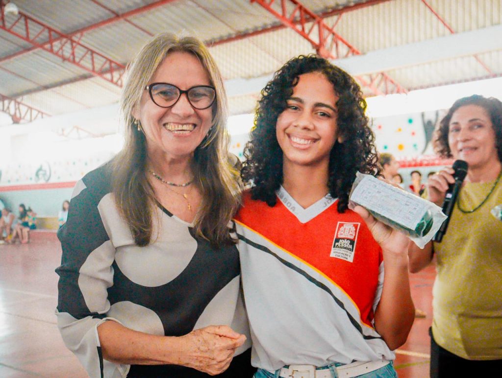 “A importância desses óculos é muito grande, porque antes eu não enxergava muito bem”. A declaração é de Laura Beatriz, aluna do 9° ano da Escola Municipal Violeta Formiga, localizada no bairro de Mandacaru. Ela e outros 213 alunos da unidade de ensino receberam, na manhã desta quarta-feira (21), óculos de grau por parte da Prefeitura de João Pessoa. A Secretaria de Educação e Cultura (Sedec) ainda fez a entrega de 183 carteiras estudantis do projeto ‘Carteira Solidária’, iniciativa que integra o programa ‘Procon-JP vai às aulas’.