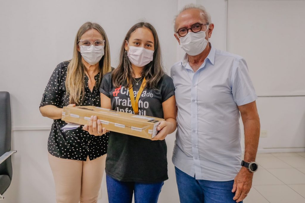 A estudante Emilly Katarine Leite, de 13 anos, deu destaque nacional à cidade de João Pessoa. Aluna da Escola Municipal Analice Caldas, em Jaguaribe, ela subiu ao pódio nacional do Prêmio MPT na Escola 2021, na categoria Poesia. A premiação foi entregue, na tarde desta quinta-feira (10), pela procuradora do Trabalho Edlene Felizardo, no Gabinete do prefeito Cícero Lucena.