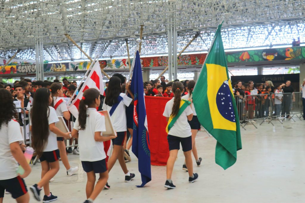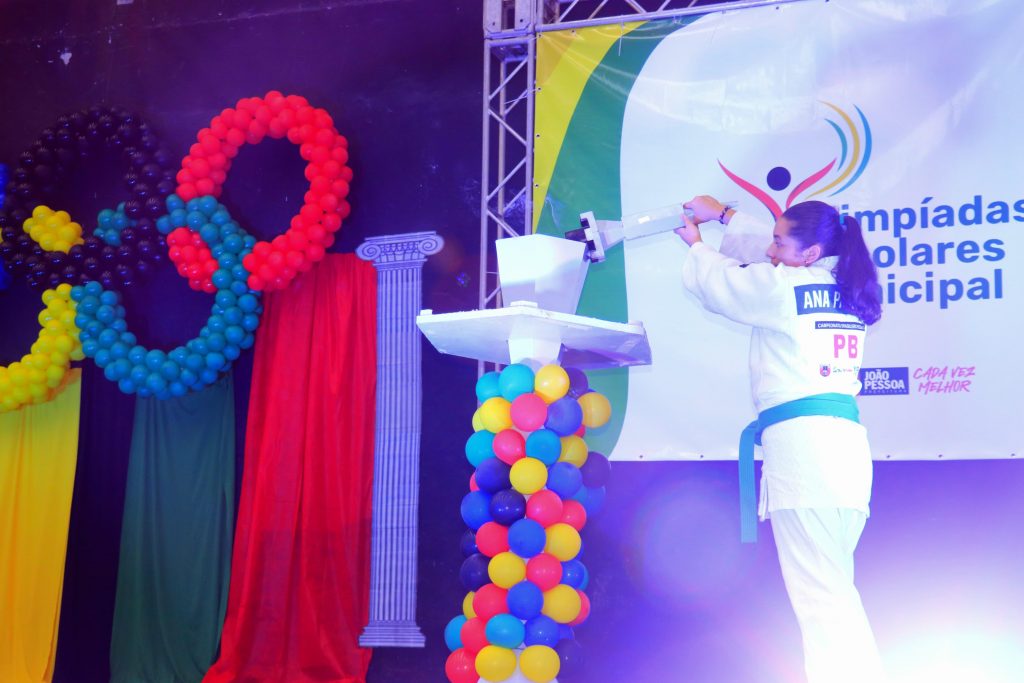 Tocha Olímpica é acesa – O evento de abertura das Olimpíadas Escolares reuniu alunos, professores e coordenadores de escolas. A cerimônia foi marcada pelo desfile dos estudantes que irão participar da competição e apresentações de dança. Além disso, a tocha olímpica foi acesa pela estudante Ana Pimentel, da Escola Municipal Zulmira de Novais. Com apenas 13 anos, ela já entende a importância do esporte em sua vida. A menina luta judô.